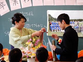 五十市中学校は、無事、修了の日を迎えました。これまで、いろいろな面で頑張ってきた生徒達。どこかしら堂々とした雰囲気に包まれていたような気がします。修了式の後は、たくさんの表彰がありました。それぞれが、この1年間の頑張りを胸に、新たな1年に向かうことになります。2年生は最高学年の3年生に、1年生は中堅の2年生に進級します。この春休み期間に、しっかりと進級の準備をしておきましょう。
