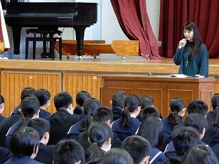もうすぐ夏休みになります。8月は原爆投下や終戦など、戦争と平和について考える機会の多い時期です。今の私たちの平和は、これまでの歴史の上にあるのです。そこから多くのことを学び、同じ過ちを繰り返さないために、私たちは得た知識を元に自分のこれからに活かしていかなくてはいけません。きっと生徒達はみんなそのことがわかっていたのでしょう。真剣なまなざしで講演を聴いていました。
