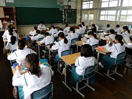 第1回目の今回は、社会科コンクールということで、都道府県・県庁所在地のテストを行いました。これは、全校同じ問題です。学級ごとの平均により順位を決め、上位3学級を表彰します。また、「満点賞」として、満点を取った生徒全員を表彰します。この学習コンクールに向けて、一生懸命な取り組みをするのも、五十市中学校の伝統の一つになっています。