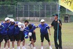 とても暑い日でしたが、もっともっと熱くなる体育大会に向けて、この日は結団式が行われました。生徒会がいろいろな趣向を凝らし、仮A団、仮B団の団長により団の色が決定しました。五十市中学校では2団で体育大会を行っています。赤団、青団です。夏休みが明けたら、体育大会の練習が本格的に始まります。毎年、感動の体育大会が行われてきました。今年度も大いに期待されます。