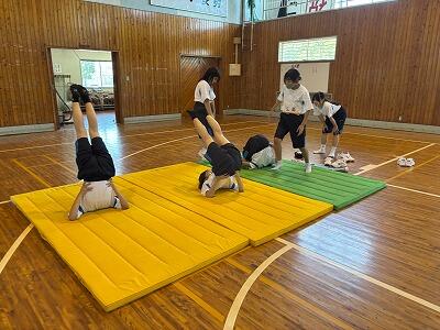 1年生の保健体育で、マット運動の授業を行いました。