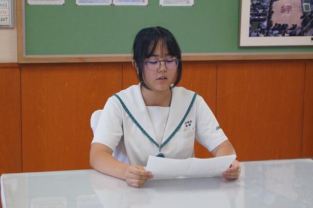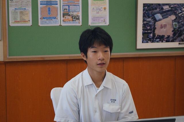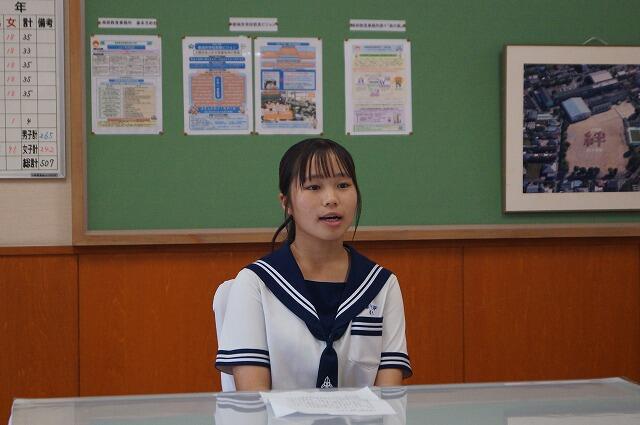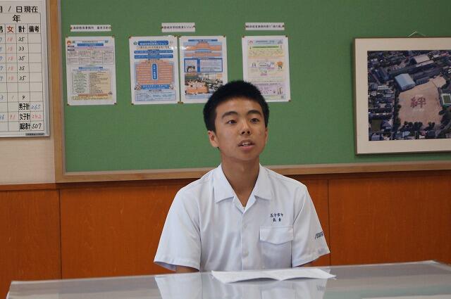 2学期は大きな行事がたくさんあるので、生徒会代表として学校全体のことをしっかり考え、みんなが安心して楽しく過ごせるような学校づくりに取り組んでいきたい。