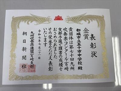 吹奏楽部:宮崎県吹奏楽コンクール 金賞
