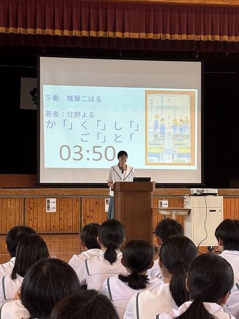 学年生徒の投票の結果、「あの花が咲く丘で、君とまた出会えたら」がチャンプ本に選ばれました。発表者の遠藤楓佳さんは学年代表として、10月4日(金)桜凜祭のビブリオバトルに出場します。さらにパワーアップした素晴らしい発表を期待しています。