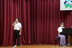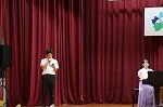 前半は、ものまねを用いた独奏や生徒・先生方からのリクエスト曲で会場を盛り上げていただきました。ピアノ演奏とともにダンスをする生徒、歌を披露する生徒・先生の姿に生徒たちは楽しく鑑賞をすることができました。