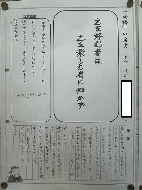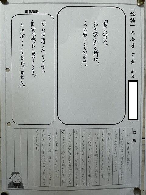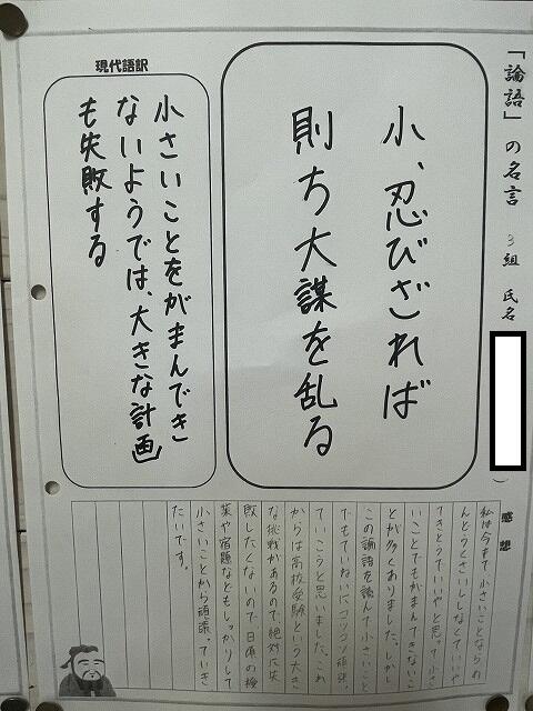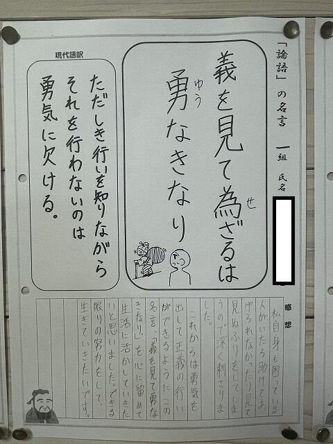 生徒それぞれが論語の名言を図書館の本などを使って調べ、まとめました。