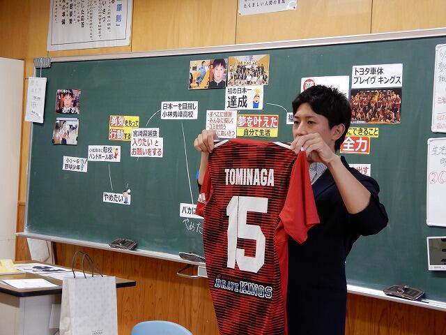 6月20・21日、2年生を対象に「JFA夢の教室」が行われました。講師の冨永直斗さん、石川安彦さん、川邉隆弥さんは、プロのスポーツの世界で活躍されている方々です。前半は体育館でゲームで楽しく汗を流し、後半は教室で貴重なお話を聞くことができました。夢を叶えるために大切なことをご自身の経験から熱く話してくださり、前向きで元気の出るメッセージが生徒の心にまっすぐ伝わっているようでした。今日学んだことを自分の生活に生かして、それぞれの夢に向かってチャレンジを続けてほしいです。
