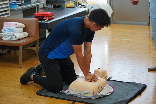 講話では、心肺蘇生法、AEDの使い方、アナフィラキシーショックの対応、熱中症の対応などの内容でした。