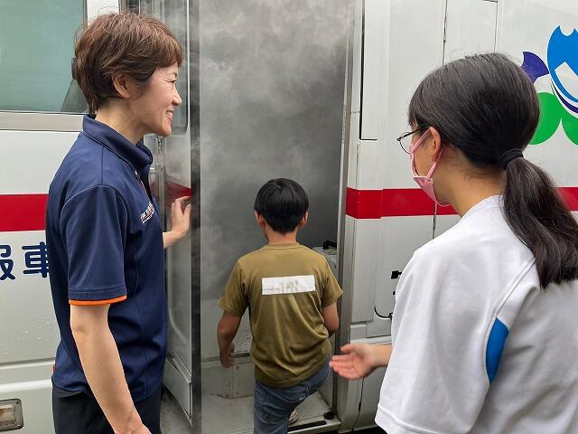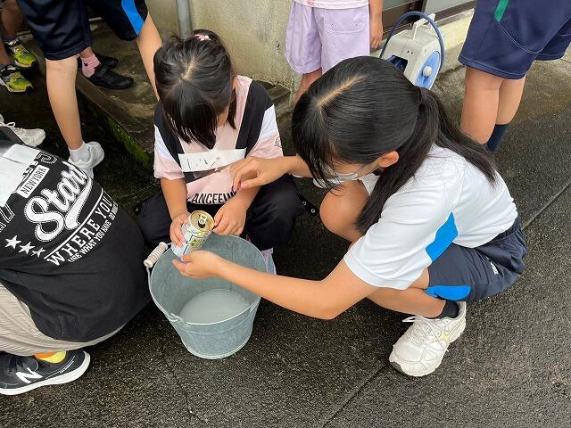 空き缶でお米を炊いたり、消化器を実際に使ったり、人が吸っても大丈夫な煙が充満している車に乗って煙の中での視界を体験したりしました。小学生と中学生の二人一組のペアで最初は仲良くなれるか心配だったけど、とっても楽しく色々な体験をする事ができてよかったです。今日のうめきたキャンプ部を通して学んだことや体験したことを、これから生きていく中で活かしていきたいです。(田中 愛央奈)