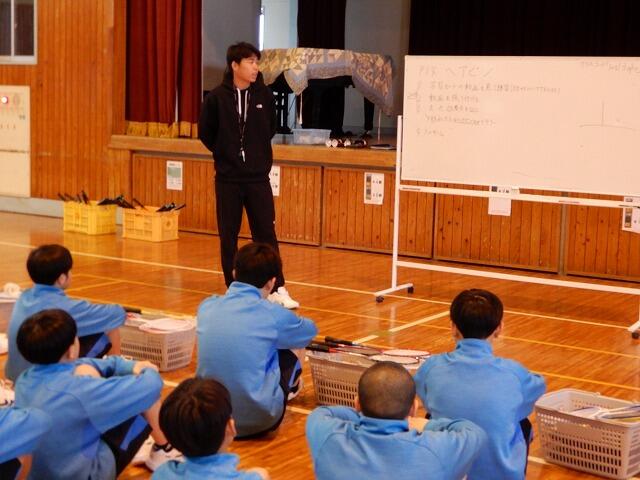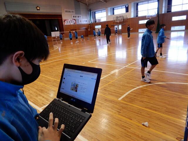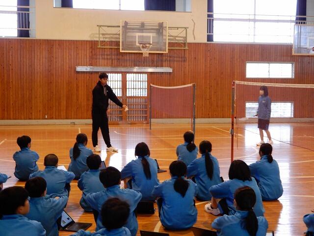 2月6日(金)、1年5組にて森田晴紀教諭による保健体育(バドミントン)の研究授業がありました。