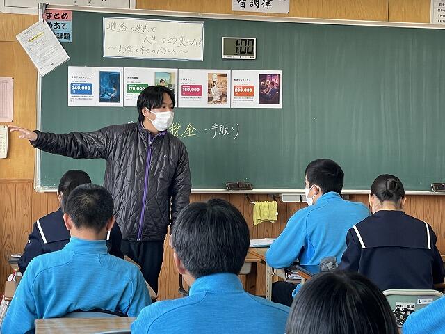 生徒は、生活にかかる支出額の多さに少し驚いていたようです。今日得た知識や今後の進路学習を深め、自分らしいよりよい生き方をするために人生を切り拓く力を磨いてほしいです。