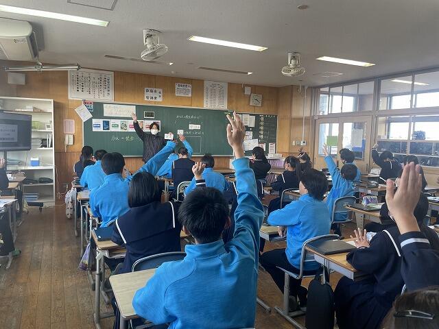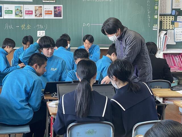 2月2日(月)、2年4組にて堤達哉教諭による学活の研究授業がありました。「進路の選択と10年後の生活シミュレーション」という題材で、収支のバランスを考えながら、生き方や自分の価値観について意見を交換しました。