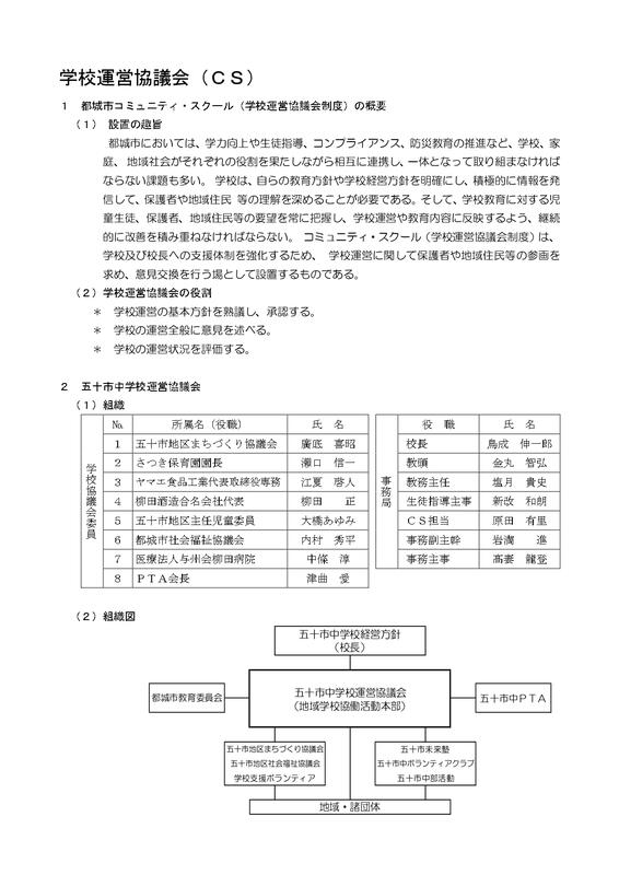 ④ 五十市中学校は、私の母校でもあります。自分の母校に我が子が通い、保護者、学校運営協議会委員として関わることをありがたく思っています。子どもたち、学校のためにできるだけ、協力していきたいと思います。