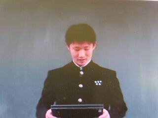 退任式では、今まで祝吉中を支えてきた旧生徒会役員に、感謝状と記念品が贈られました。その後、旧生徒会長が感謝の気持ちを表した退任のあいさつを行いました。