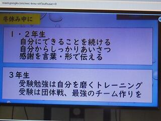 12月24日(水)に終業式を行いました。今回は、感染症拡大防止のために、リモート形式で行いました。