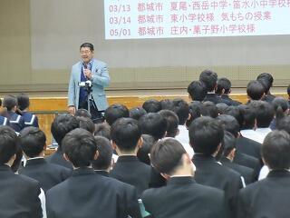2月10日(火)の午前、都城警察署の警察官2名を講師に迎え「薬物乱用防止教室」を行いました。動画やプレゼンの視聴を通して、講話をしていただきました。生徒たちは、今回の講話を通して、薬物乱用の恐ろしさと命の大切さを学ぶことができました。今回の講話を今後の生活に生かしてほしいと思います。