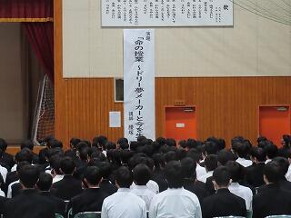 全校生徒は、真剣な眼差しで、腰塚さんのお話に耳を傾けていました。「命の大切さ」について考えるよい機会となりました。