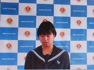 英語弁論では、2人の生徒が気持ちの入った発表をしました。国語科発表では、3年生の中から選ばれた優秀な俳句の中5句紹介されました。