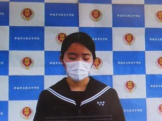 退任式では、今まで祝吉中を支えてきた旧生徒会役員に、感謝状と記念品が贈られました。その後、旧生徒会長が感謝の気持ちを表した退任のあいさつを行いました。