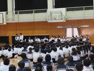 午前は、英語弁論・国語科発表や合唱コンクール、吹奏楽部演奏を行い、午後は鑑賞教室としてミュージカルが上演されました。