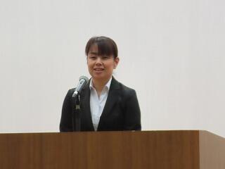 始めに「1年間の反省」を各学年と生徒会役員の代表生徒3名が、落ち着いて自分の言葉でしっかりと発表しました。次に、各学年の代表生徒2名に修了証が授与されました。