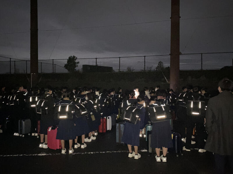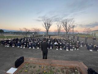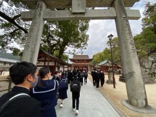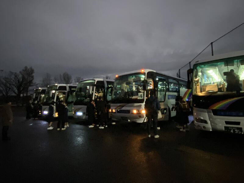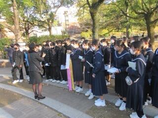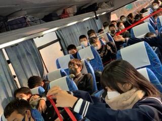 早朝から早水公園に生徒を送っていただいた保護者様、交通整理をしていただいた父親委員会の皆様ありがとうございました。出発式後にバスで長崎県に向かいました。