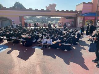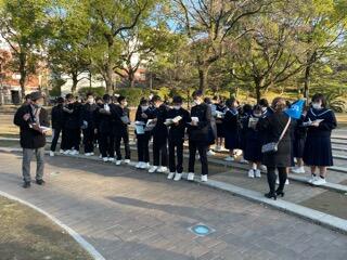 組によっては飛行機の離陸が遅延したため、早水公園での解散が遅れました。しかし、無事、帰ってきました。今回の修学旅行のスローガンは「絆旅」で、3日間、寝食を共にしたことで生徒同士の絆が深まったと思います。