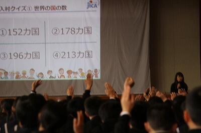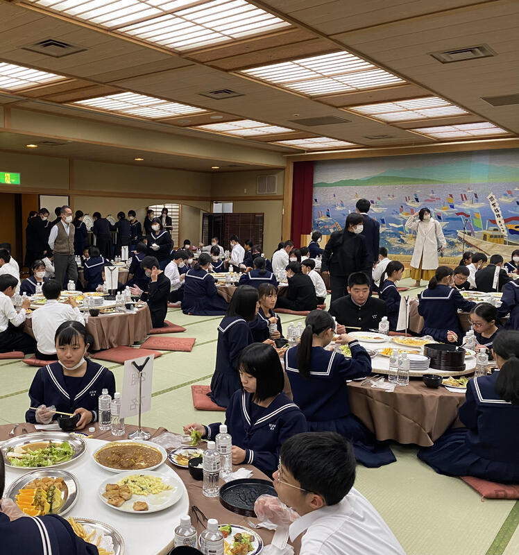 生徒たちは、「募金やボランティア活動に積極的に参加していきたい」、「今までは食事を残してしまうことがあったけれど、これからは食べ物を大切にしたい」といった感想を述べていました。自分たちにできることは何かを考える、良い機会となりました。