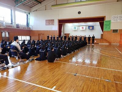 5月30日(金)に体育館で職場体験学習前に正式な礼儀作法を学ぶ機会として、日章学園 トータルエステティック科様をお招きして礼法指導をしていただきました。