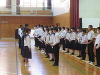 今年度の締めくくりです。身だしなみも整えて厳粛な雰囲気のなか、1・2年生のみで初めての儀式に臨みました。