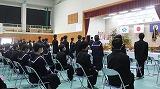 明日の入学式に向けて準備された体育館で、新2年生、新3年生が整然とした態度で式に