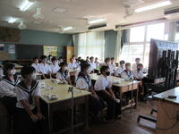 3年生は体育館で、日章学園の先生と生徒さんを迎えて、『礼法指導・マナー講座』を実施しました。今後の受験対策(面接)の一環にもなります。