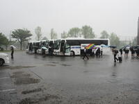 集合場所の都城運動公園野球場側駐車場は、出発・到着両日ともにあいにくの雨模様ではありましたが、保護者の皆様はもちろん、駐車場整理協力の父親委員会をはじめ、PTA三役の皆様、本校職員の見送り・出迎えで大賑わいでした。