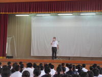 また、生徒総会の議題として全校生徒で話し合った『いじめや差別の防止』の内容に触れられ、「これからも友達との関わりを大切にして助け合って欲しい」というお願いもありました。