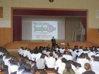 3回(3週)にわたって、3年生を対象とした「高校説明会」を実施しました。本校卒業生の進学先で馴染みのある県立・私立高校による説明でしたが、体育館に集合した生徒たちはもちろん、足を運ばれた保護者様も各高校の担当者の声にしっかりと耳を傾け、スクリーンに見入っていました。