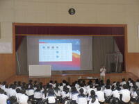 学校保健委員会では「ネットトラブル防止」を講演テーマとして、3年生は体育館、1・2年生はリモートで視聴しました。昨今、SNSを介してのトラブルや犯罪も多いだけに、改めて情報機器を扱う際のマナーやルールについて考えさせられました。