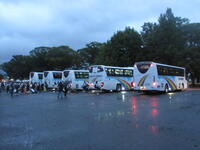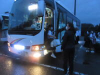 集合場所の都城運動公園野球場側駐車場は、出発・到着両日ともにあいにくの雨模様ではありましたが、保護者の皆様はもちろん、駐車場整理協力の父親委員会をはじめ、PTA三役の皆様、本校職員の見送り・出迎えで大賑わいでした。