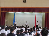 また、生徒総会の議題として全校生徒で話し合った『いじめや差別の防止』の内容に触れられ、「これからも友達との関わりを大切にして助け合って欲しい」というお願いもありました。