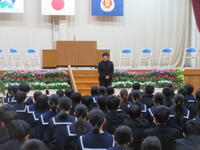 校長先生からはこの一年間、「自分や周りの命を守ってくれたこと」「凡事徹底・鍛錬について自分たちで考えてもらえたこと」への感謝のお話がありました。