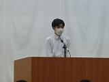 式では、これまで頑張ってきた旧役員へ花束が贈呈され、代表して旧生徒会長が、これまでの生徒会活動を振