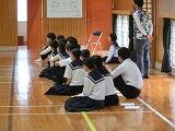 体育館では、男女別に身長・体重の計測が行われ、普段からの集団訓練を活かし、テキパキと進んで