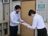 本日の午後、都城警察署より担当の方々が来校され、代表して生徒会長に指定書が手渡されました。