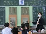 授業では、都城市立美術館の学芸員の方々のご協力をいただき、雪舟の『秋冬山水図』の掛軸を実際に