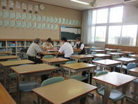 地区別教育懇談会は、4年ぶりの実施でした。今回は従来からの規模を縮小しまして、公民館長、地区役員、本校の各地区担当職員で各教室に分かれて、夏休みに計画の地区ボランティア活動(公民館清掃等)や催し関係、危険箇所等の確認・意見交換を行いました。