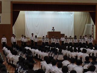 最後に校長先生が、旧生徒会役員に労いの言葉を、新生徒会役員に激励の言葉を送りました。旧生徒会役員の皆さん、祝吉中学校のために本当によくがんばりました。祝吉中学校の良き伝統を引く継ぐ節目となる1日となりました。