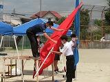 結団式では、実行委員長の話の後、本年度のスローガン発表、団色決め、団旗授与と、スピーディーに進められました。本年度のスローガンは、「金碧輝煌」~光り輝け 祝吉の星~ です。生徒一人一人が輝いて、多くの人を魅了できるような素晴らしい体育大会になるように、これからの練習をみんなで頑張っていきたいと思います。