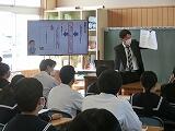 今回は、「自社の仕事の内容や魅力等を紹介するとともに、講師自身の職業観やキャリア形成の過程などを語ってもらうことで、職業観を養い、地元で働く意識を醸成する」という目的で行われ、生徒達はそれぞれ希望した2つの企業から話を聴かせていただきました。どの講師の方も、さすがにお話が上手で、生徒達は熱心に話を聞きながら、メモをとったり、質問をしていました。