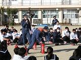 今回は、南消防署と連携し、火災報知器発報→初期消火→消防署への通報訓練→避難を行い、消防署員の方か
