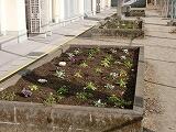【学年の花壇】 【1年教室前の花壇】 【北側道路沿いの花壇】
