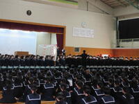 本日(3/14)の5校時目に、全校生徒が体育館に集まり、卒業式に向けた歌の練習を行いました。